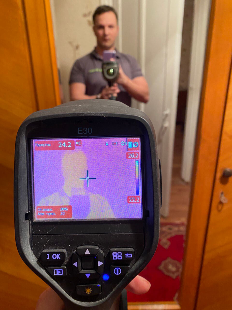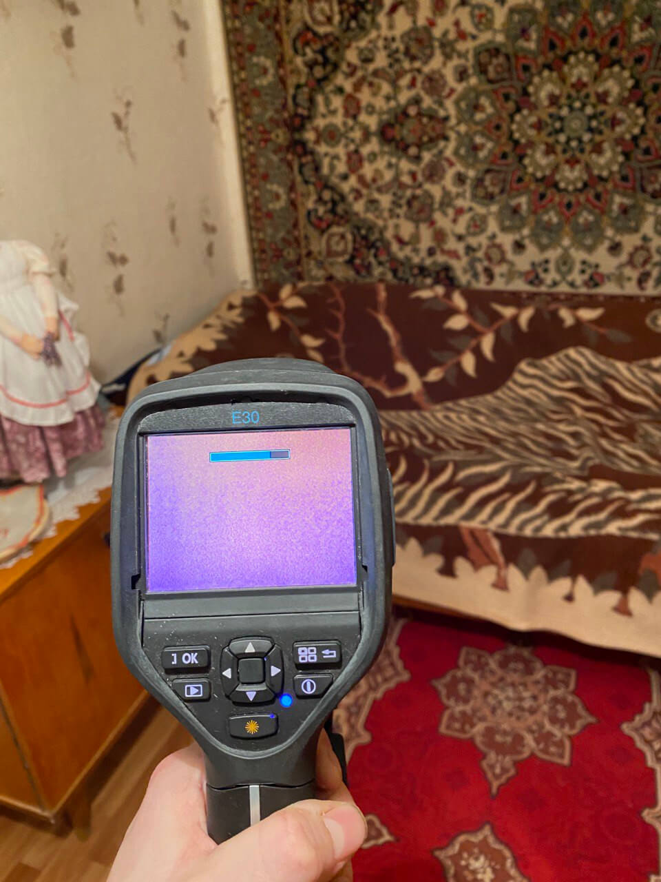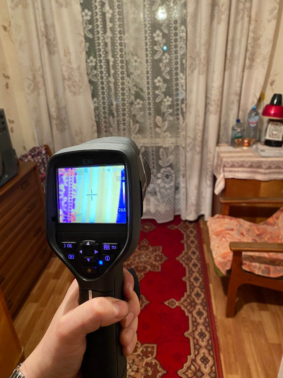 Напоминаем, что мы проводим тепловизионное обследование только когда есть разница не ниже 15°C между температурой на улице и температурой внутри помещения. Только соблюдая такое правило можно получить точный результат экспертизы