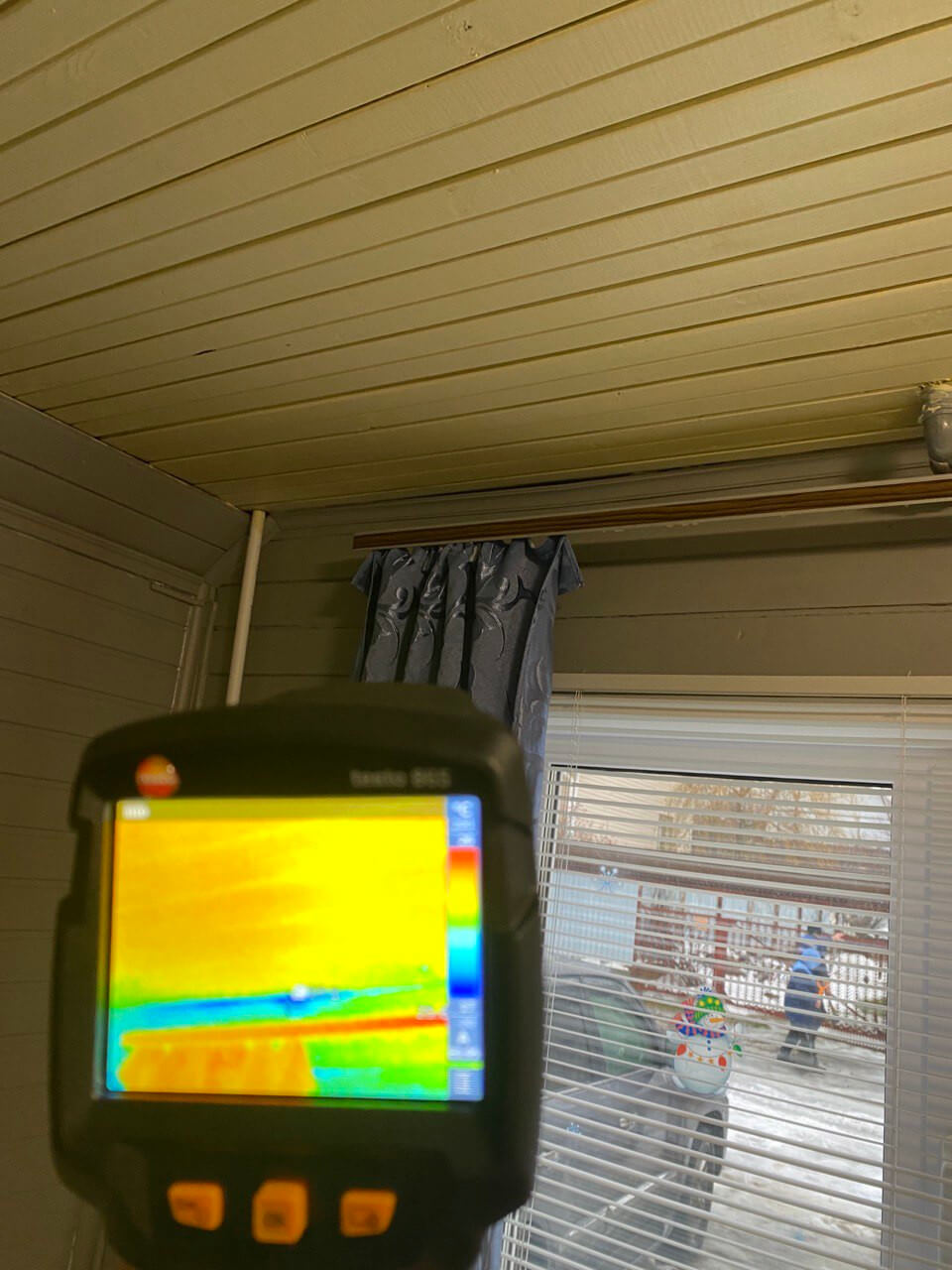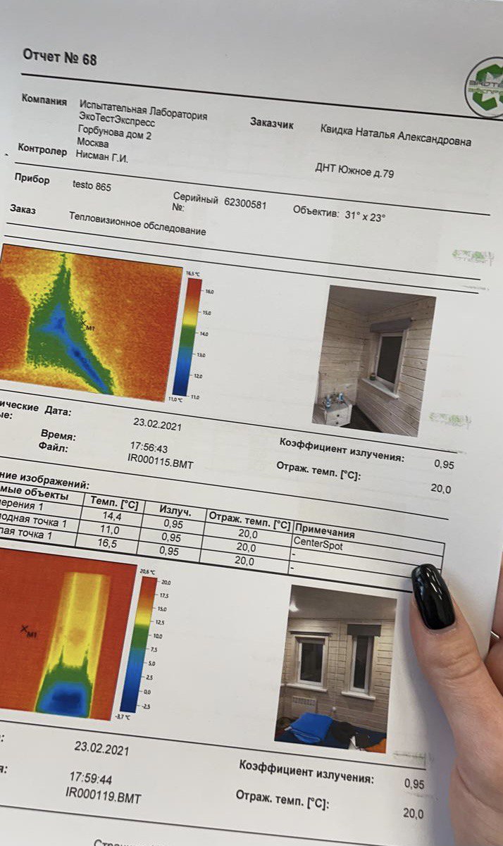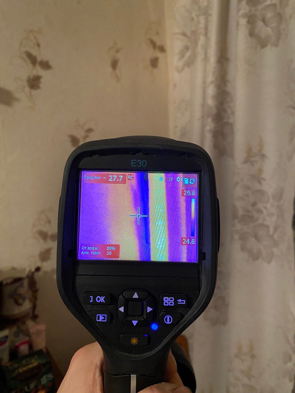 Напоминаем, что мы проводим тепловизионное обследование только когда есть разница не ниже 15°C между температурой на улице и температурой внутри помещения. Только соблюдая такое правило можно получить точный результат экспертизы